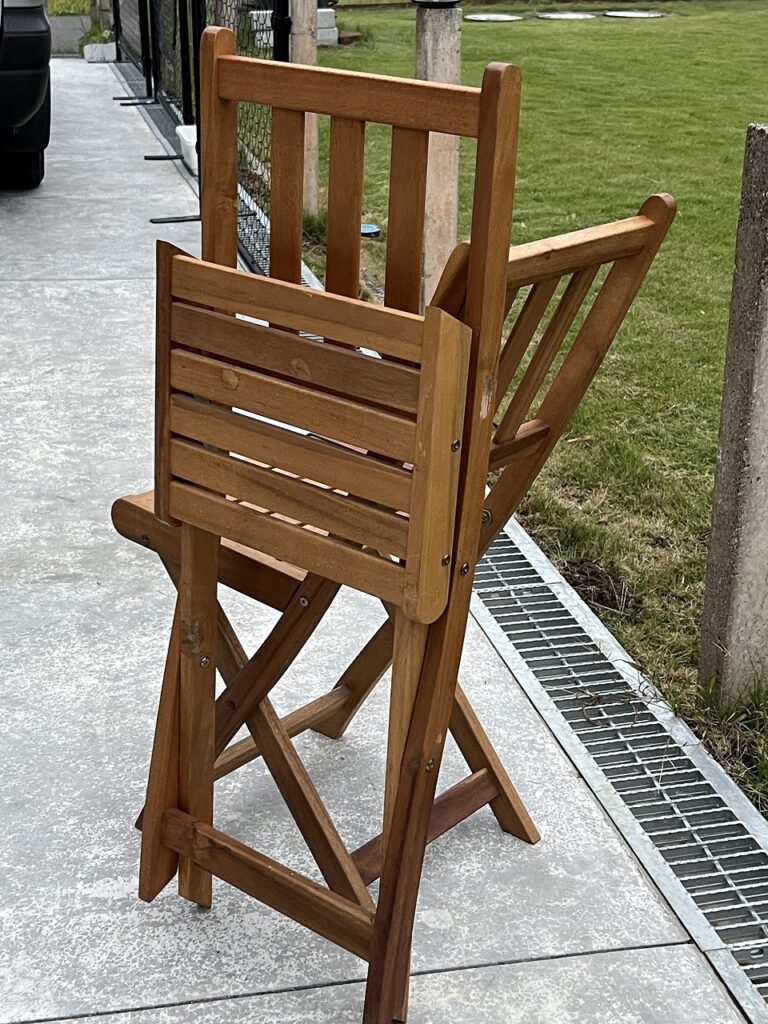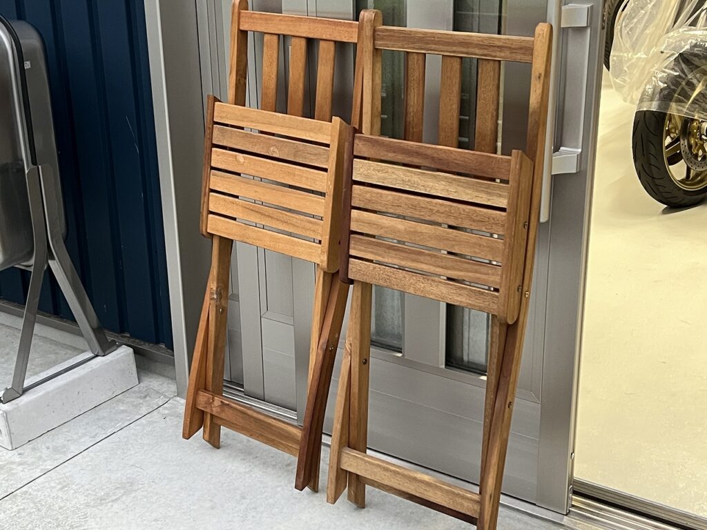 折りたたみのアンティークウッドチェアは一脚1000円