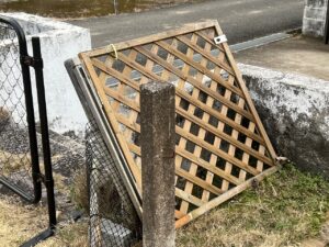 【悲報】外房の強風ナメてた。我が家の「木製の門」が根元から倒壊・崩壊しました