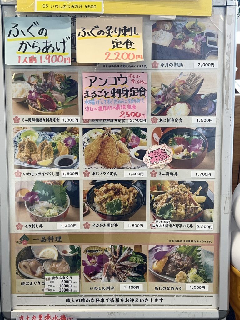 ランチ: 2階フードコートで**「イワシの漬け丼」や「はまぐりラーメン」**。