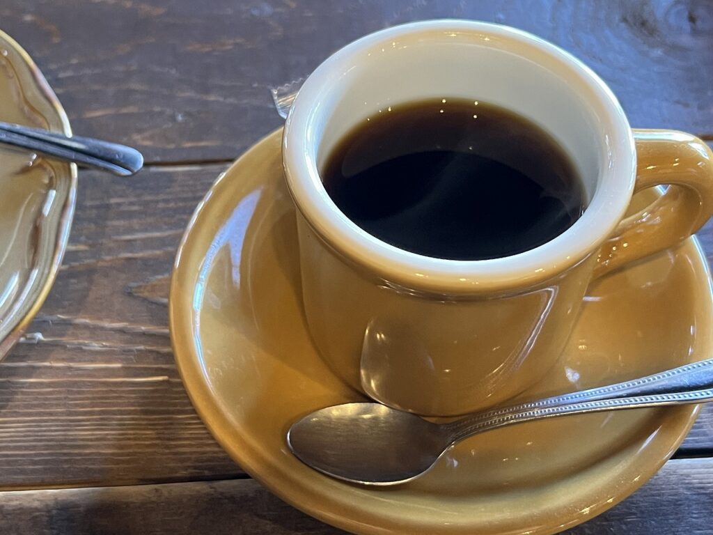 - 築100年以上の古民家カフェ。ジャズが流れる店内で、丁寧なハンドドリップコーヒーを味わう。